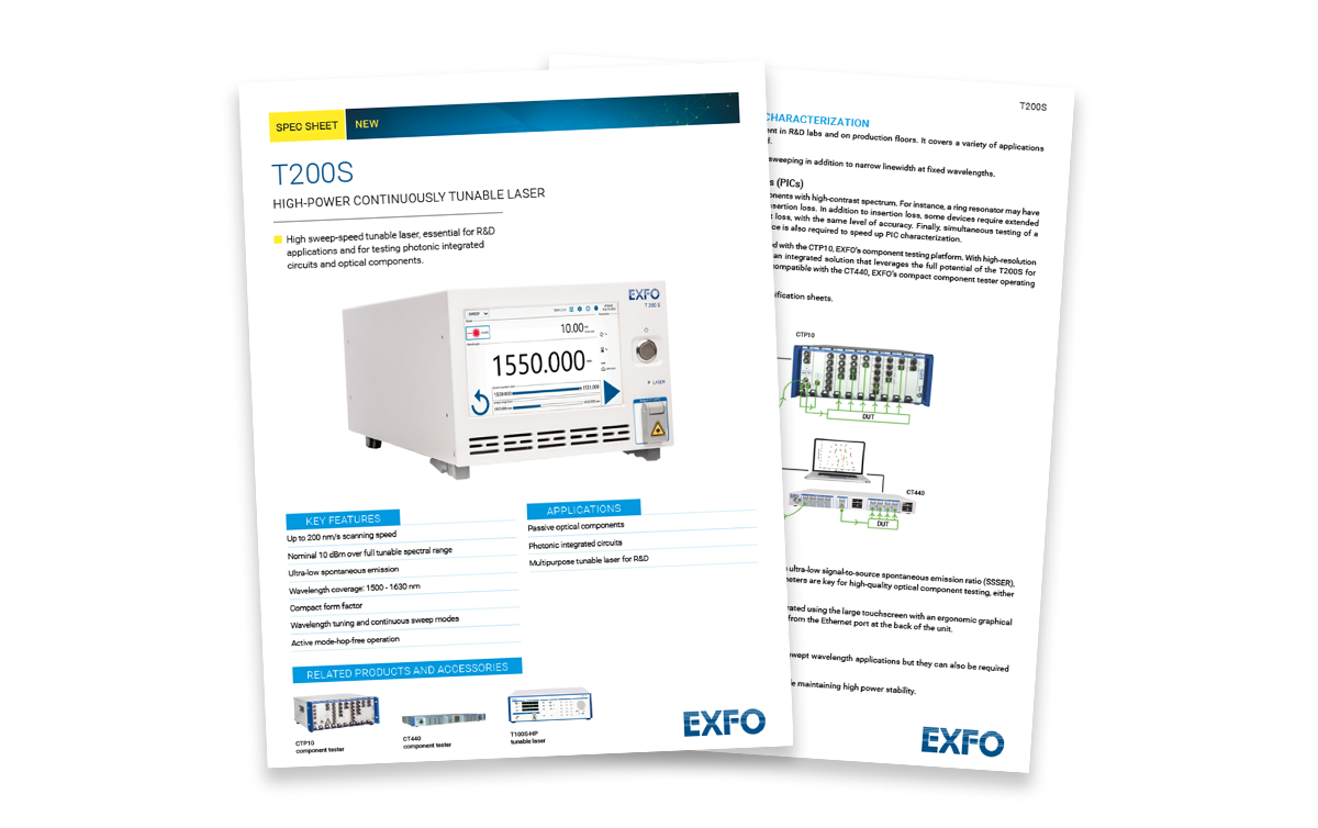 EXFO’s compact CT440 lets you quickly and accurately test passive optical components (e.g., MUX/DEMUX, filters, splitters) and modules (ROADM, WSS). What’s more, the unit covers the spectral range from 1240 to 1680 nm, allowing for measurements over the full telecom band. With the PDL option, the CT440 can simultaneously measure insertion loss and polarization dependent loss.
