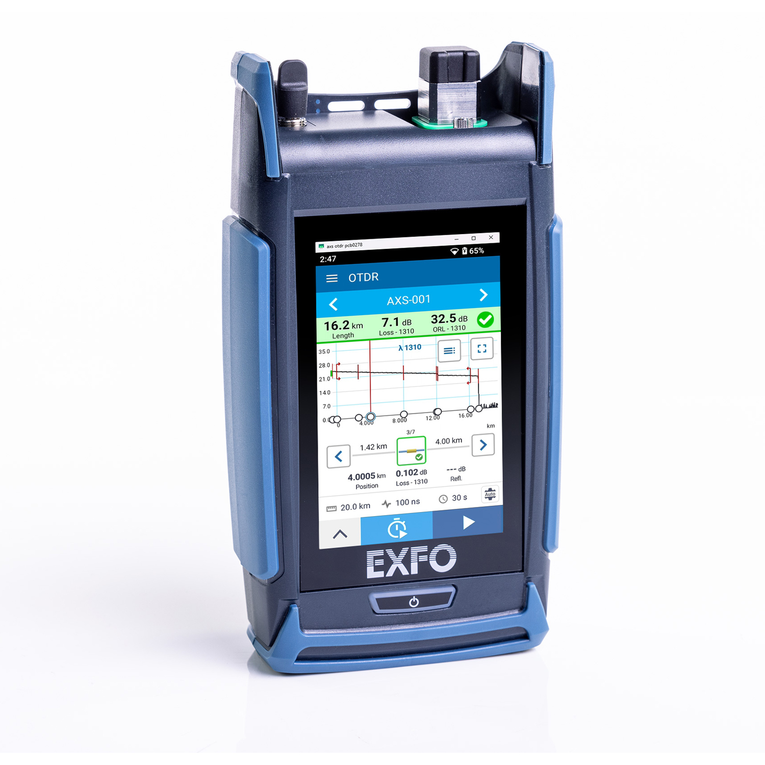 Compact yet mighty, the AXS-115 brings EXFO’s renowned OTDR accuracy, reliability and durability to the field in a compact form factor.