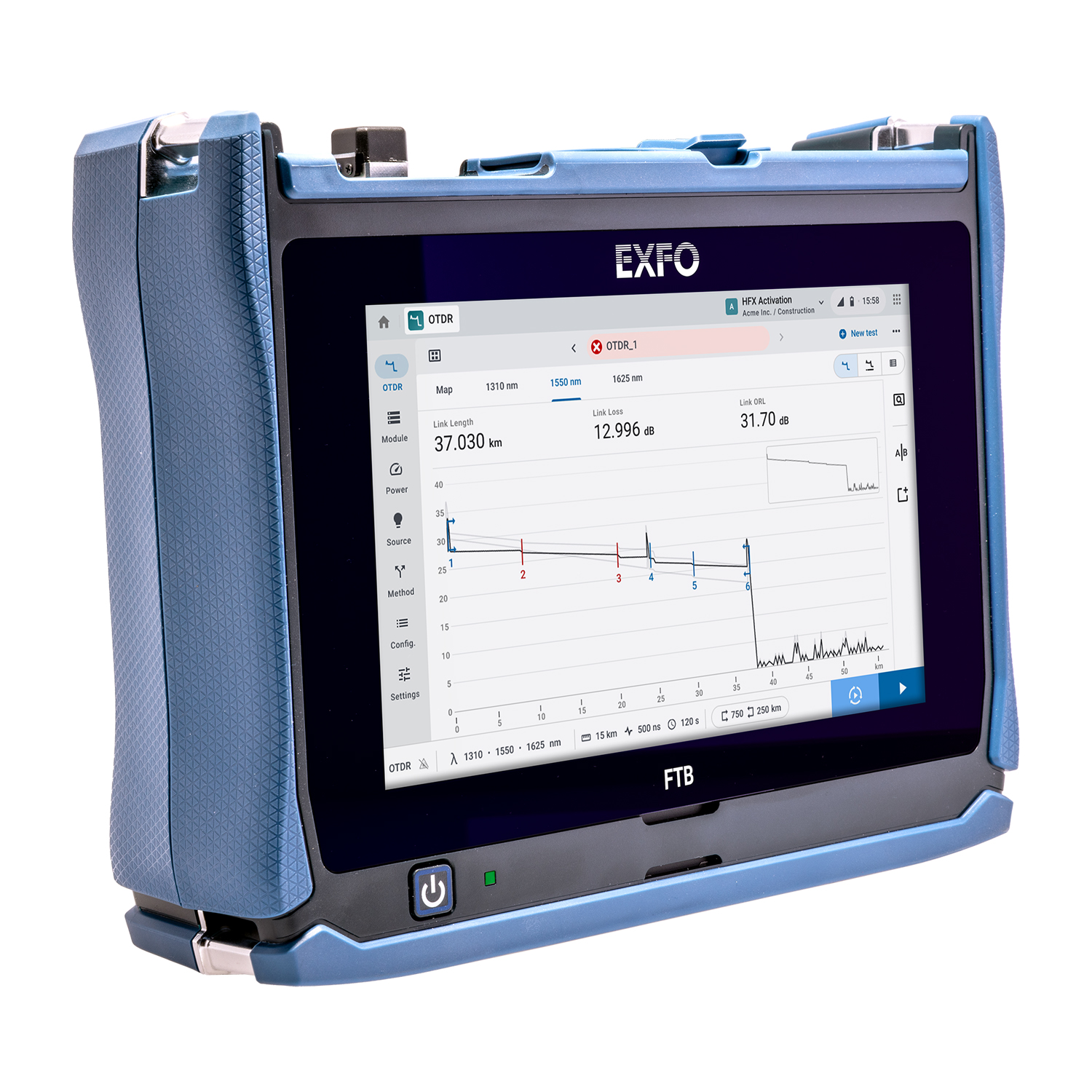 ProductCompact yet mighty, the AXS-120 brings EXFO’s renowned OTDR accuracy, reliability and durability to the field in a compact form factor.