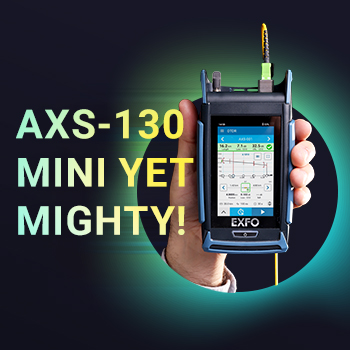 ResourcesThe AXS-130 is here! With its 39/38/39 dB dynamic range, EXFO’s AXS-130 is a mini-OTDR designed for today’s FTTH/PON deployments and troubleshooting. It is also suitable for metro networks. Mini yet m...