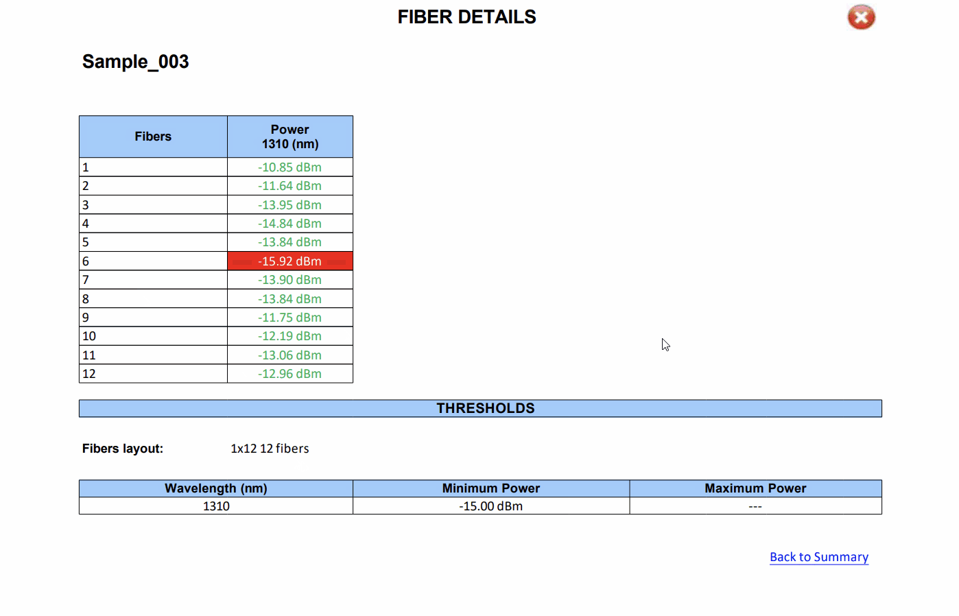 Simply click on the hyperlink in the table of contents of the report to navigate to the section with detailed information about the desired results. (Available for FIP-500 and PXM result reports.)