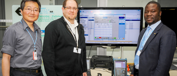 Photo (from left to rigth): Mr. Ota, Secretary of Study Group 12, Bruno Giguère, Advisor, CTO Office at EXFO, and Mr. Baah-Acheamfuor, Chairman of Study Group 12.
